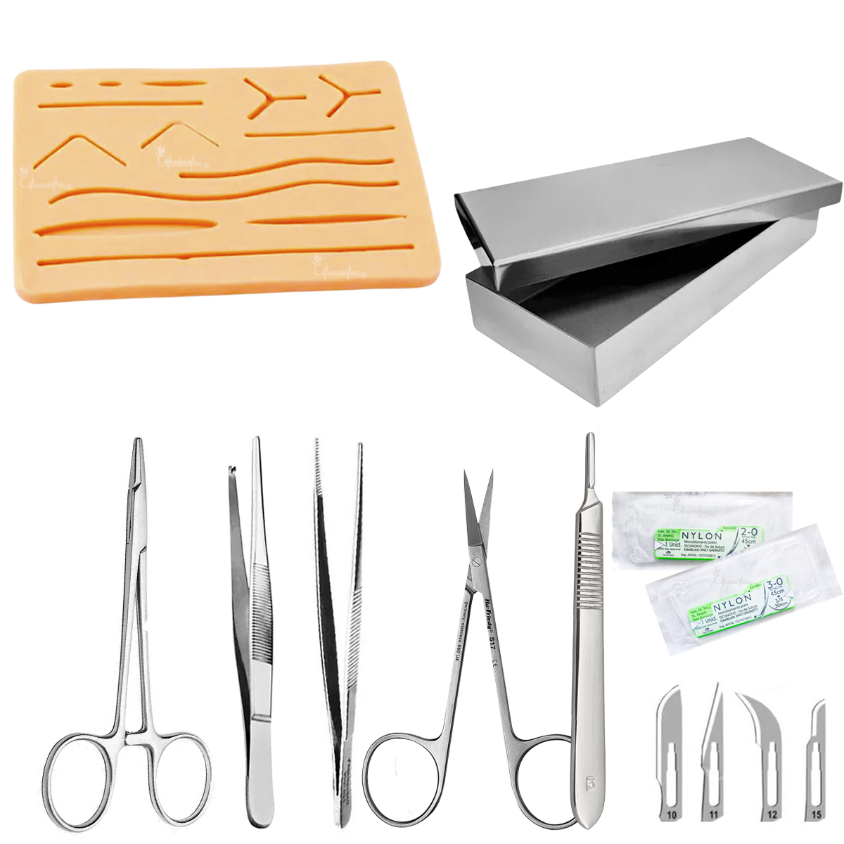 Kit 14 peças para Sutura Avançado em Aço Cirúrgico ( Inoxidável ) para Estudante com fio Nylon de Sutura
